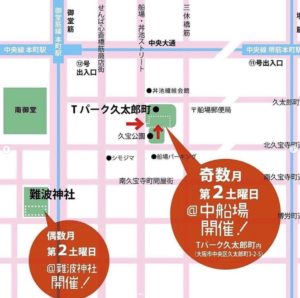 現在、第2土曜日は難波神社(偶数月)もしくは中船場(奇数月)にて大阪ぐりぐりマルシェを行っています。